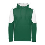 Holloway Youth Blue Chip Hoodie. Dry Excel 5.9 Ounce 100% polyester performance wicking fleece with color secure technology that helps prevent dye migration. Wicks moisture. Tagless label. 3 piece hood with lightweight mesh lining. Set-in sleeves. Front pouch pocket. Self-fabric cuffs and bottom band.